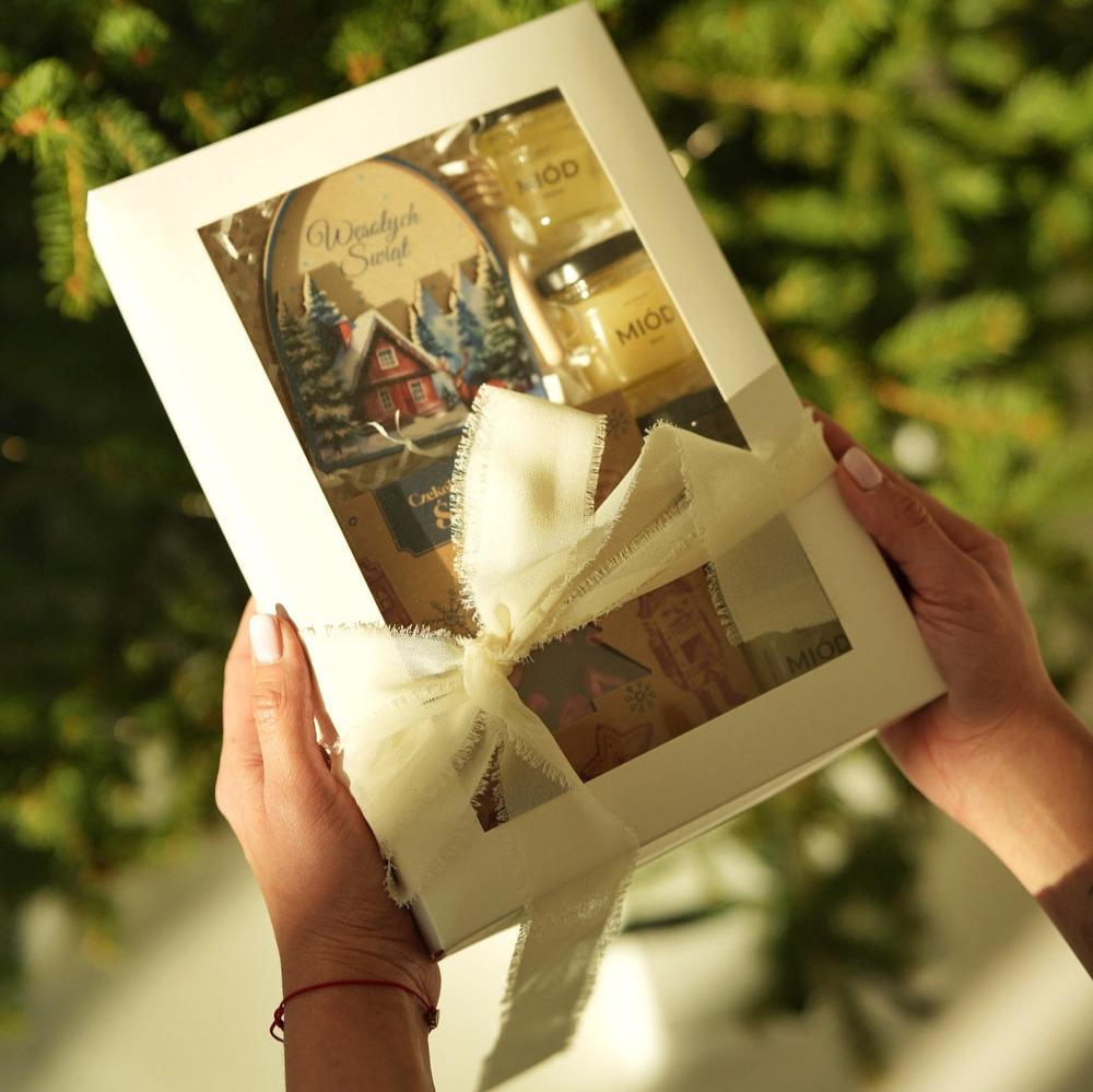 Świąteczny Box "Słodkie Święta" to wyjątkowa kompozycja, która łączy smakowite przyjemności, idealne na zimowe wieczory. Czekolada z żurawiną to harmonijne połączenie słodyczy, a zestaw mini miodków - akacjowy, lipowy, rzepakowy i gryczany - z mini łyżeczką do miodu to prawdziwa uczta dla zmysłów, doskonała do herbaty czy deserów. Zawieszka na choinkę dodaje osobistego akcentu, sprawiając, że ten zestaw emanuje magią świąt.