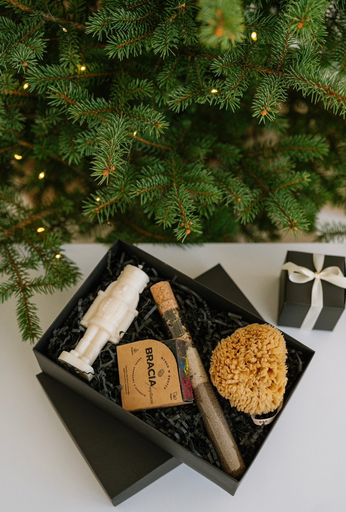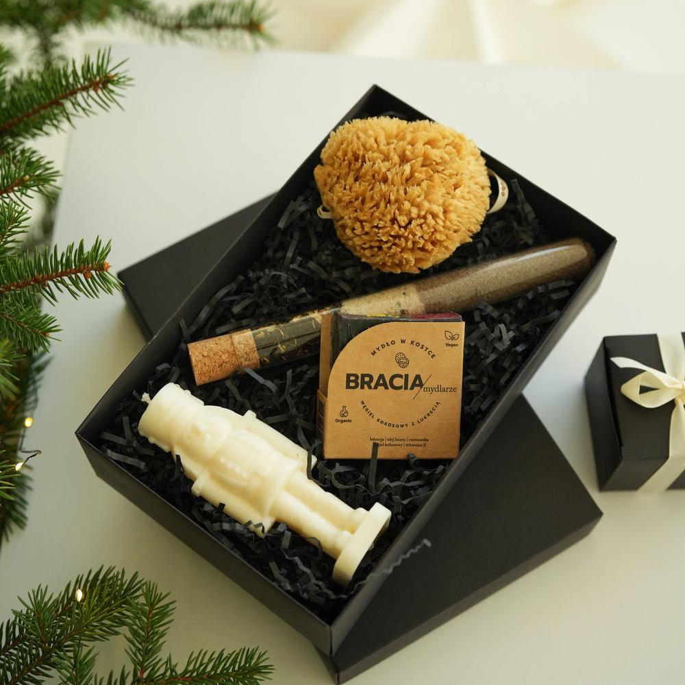 Świąteczny Box "Gentleman Relax" to wyjątkowy zestaw stworzony z myślą o mężczyznach, którzy cenią sobie chwile relaksu. Starannie dobieramy nietuzinkowe produkty, aby każdy element boxa był jeszcze bardziej wyszukany. Świeczka sojowa w kształcie dziadka do orzechów dodaje charakteru, a shot do kąpieli oraz craftowe mydło oferują luksusowe doznania. Naturalna gąbka morska podnosi komfort pielęgnacji, sprawiając, że każdy rytuał staje się chwilą przyjemności. Ten elegancki zestaw z polskich manufaktur to idealny prezent, który stanie się niezapomnianym doświadczeniem dla każdego mężczyzny pragnącego relaksu i odrobiny luksusu.